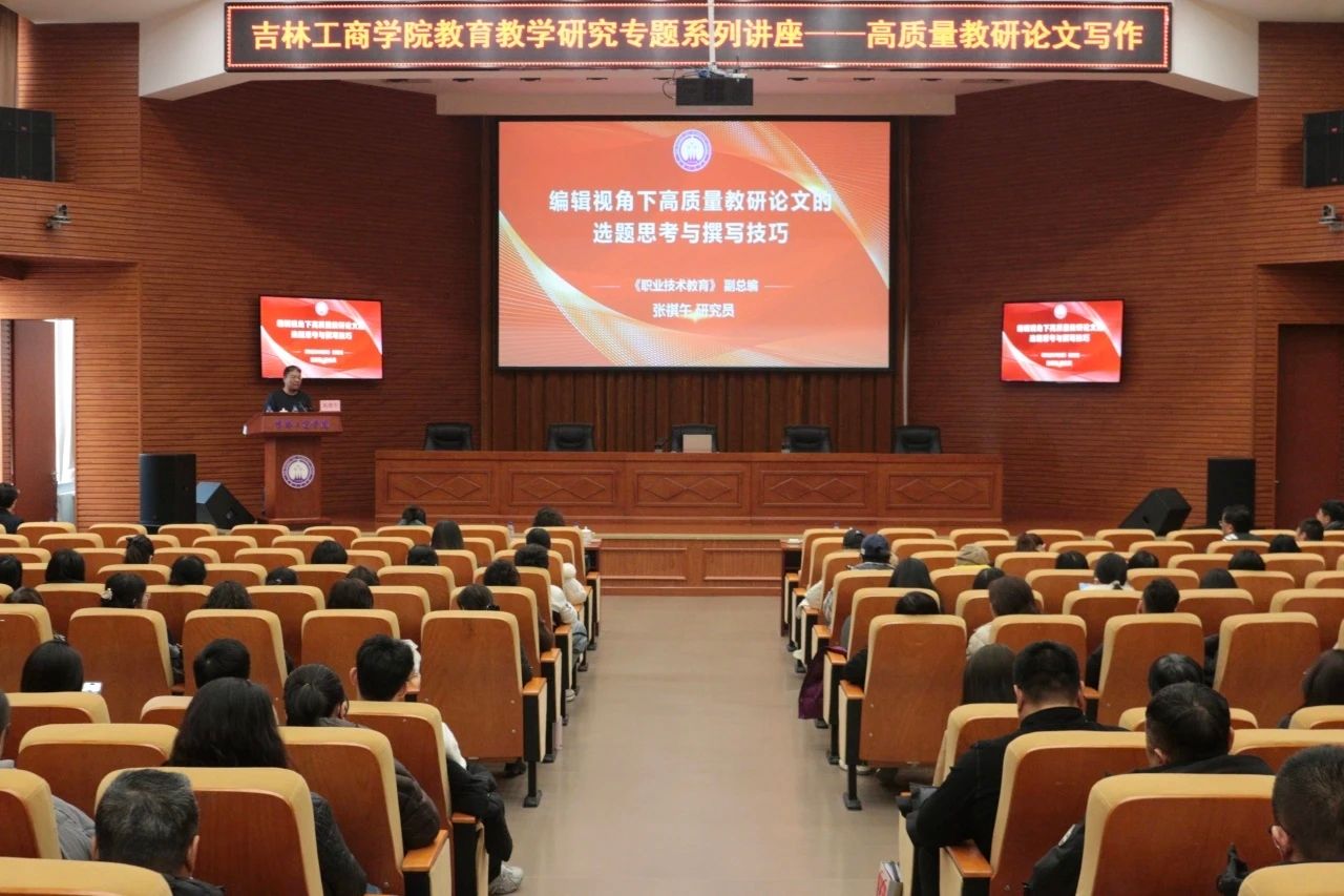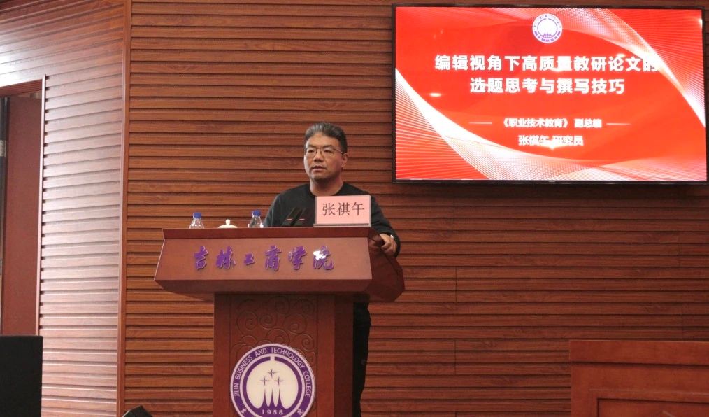 为进一步聚焦教育教学研究,精准赋能教师发展,助力我校教研水平与教研论文质量的整体提升,11月26日,学校在厚德楼A区429报告厅举办“教育教学研究专题系列讲座——高质量教研论文写作”培训。本次培训邀请吉林工程技术师范学院职业技术教育研究院院长、《职业技术教育》(北大核心)编辑部副总编张祺午研究员作专题报告。副校长董本云,高等教育研究所、吉林省高等财经教育研究基地负责人及各教学单位教师代表近200人参会。培训由学报编辑部主任王琳主持。